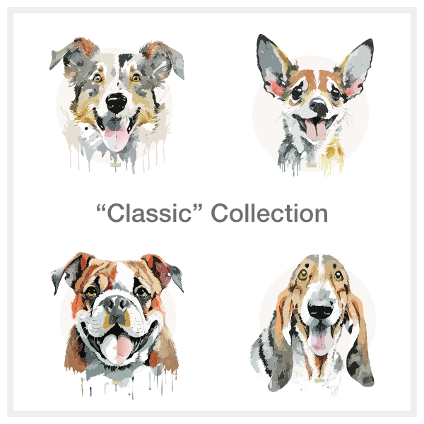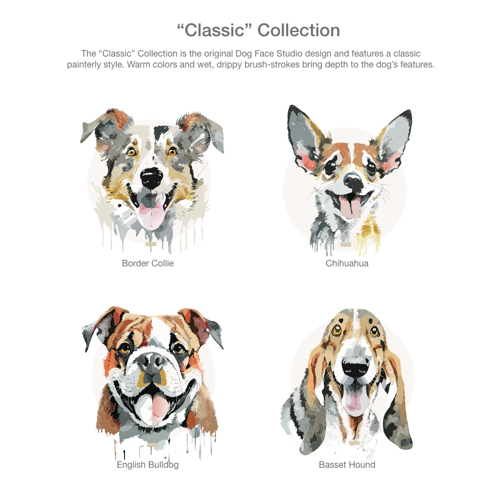 Send us a photo (or two, or three) and we can create an original Dog Face graphic for you.